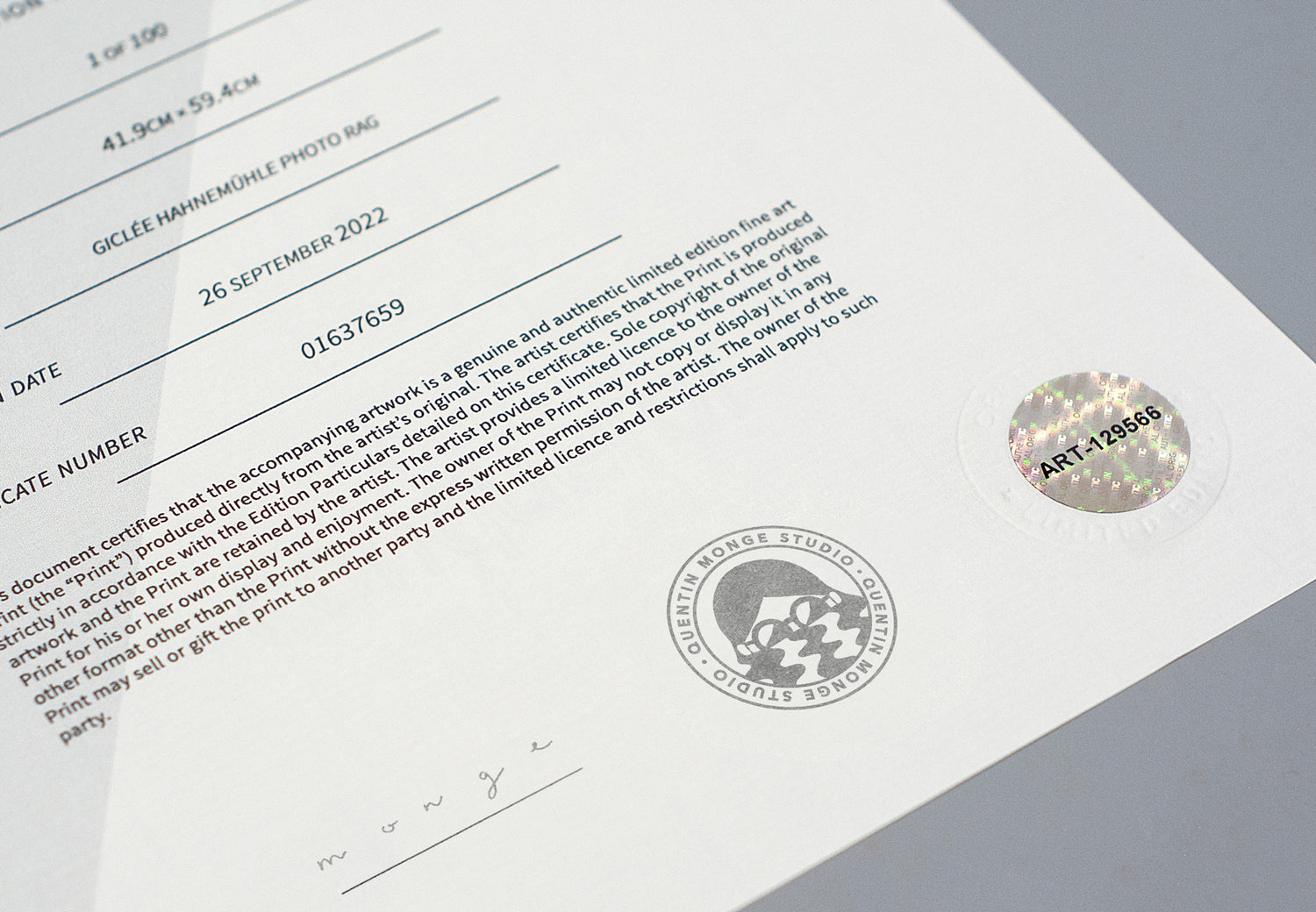 Each print on my website comes as a limited edition with a numbered certificate of authenticity. Once the edition is sold out, this artwork will never be for available for sale again.